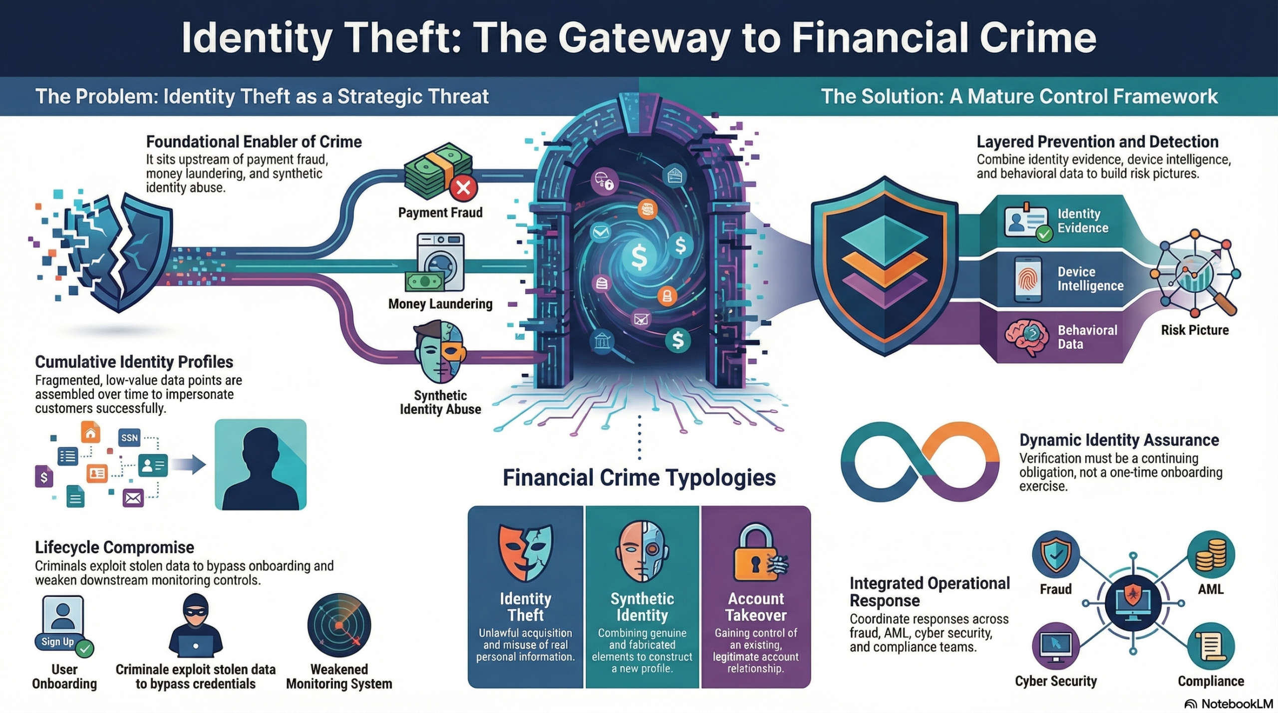 Ultimately, identity theft is a core financial crime risk because it allows criminals to manufacture legitimacy from stolen personal information. It can compromise onboarding, weaken authentication, distort transaction monitoring, and provide a gateway to fraud, account abuse, and illicit fund movement. In modern financial services, especially those built around remote onboarding and digital servicing, the challenge is no longer just verifying that an identity exists. It is determining whether the person presenting that identity is the rightful individual, whether control remains with them over time, and whether the surrounding behaviour supports that conclusion. For that reason, identity theft should be treated as a central component of the financial crime threat landscape, requiring integrated controls, strong governance, continuous reassessment, and close coordination across fraud, AML, cyber, and operational functions.